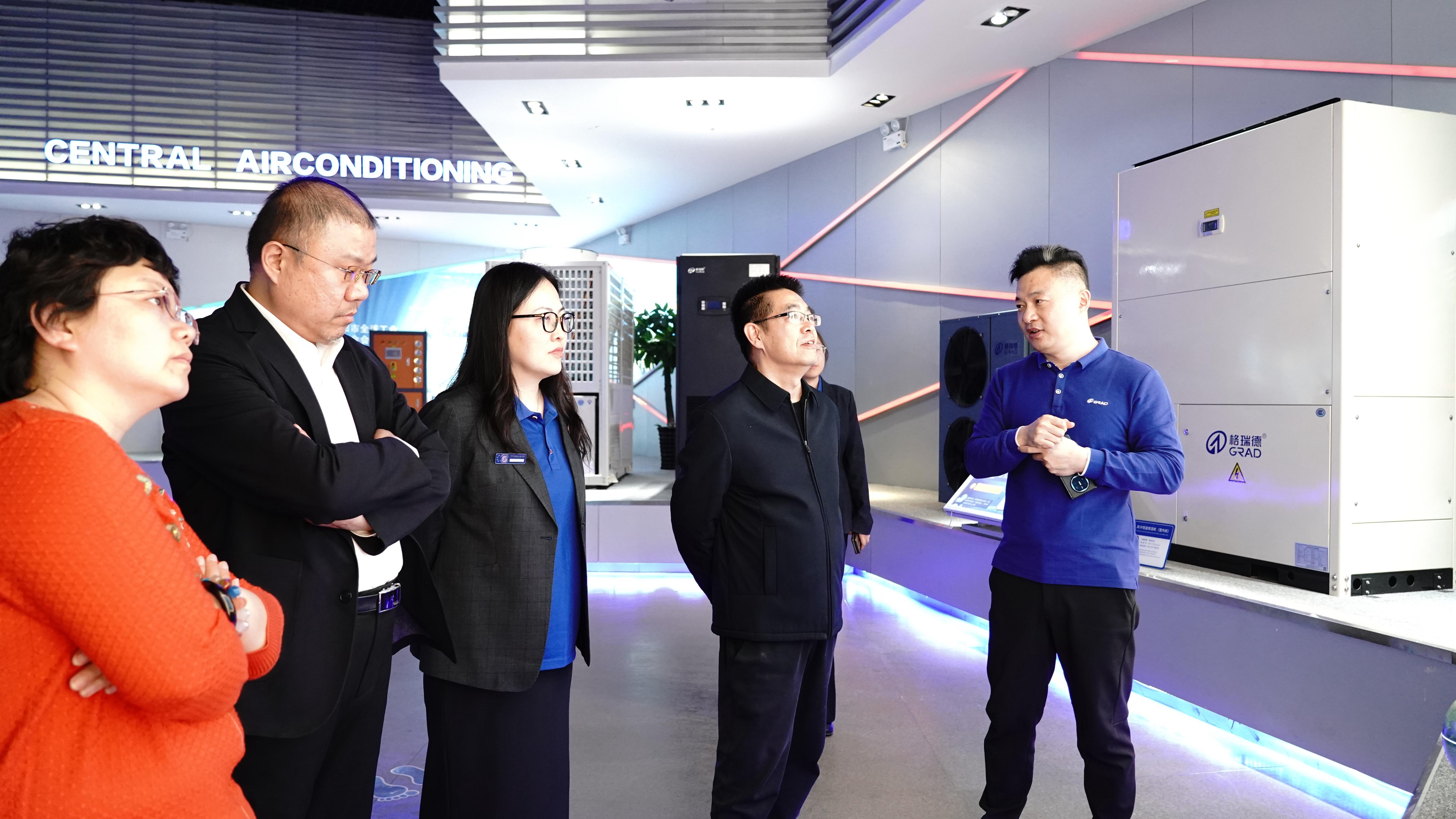 耿发升主席一行首先参观了集团展厅,集团总经理王志军向耿主席一行介绍了集团磁悬浮主机、催化燃烧装置等产品的优势及适用范围,耿主席一行对于集团节能、环保的产品发展及设计理念表示认同。